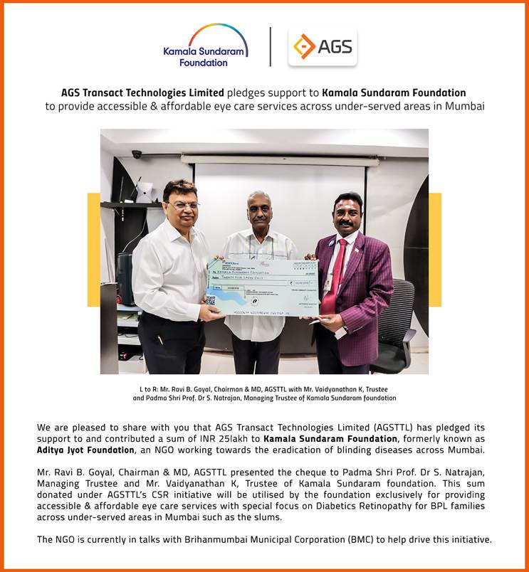 The KSF has been approved as the official partner to provide focussed eye care in all BMC dispensaries and Hindu Hriday Samrat Balashaeb Thackeray (HBT) free clinics. The KSF will screen all the diabetic patients coming to these clinics and check their retina with the help of a special mobile based app with AI. This will give instant findings and the patient will be advised in time for further course of treatment. The formal MOU was signed on January 18, 2023 between the BMC and KSF. Sri Ramakant Biradar, DMC and Dr prof. S. Natarajan, founder trustee of KSF signed and received their copy at the BMC F south office. Dr Mangala Gomare, Executive Health Officer, sri. Vaidyanathan, co trustee, KSF, Dr Pramod Ashtekar Dy EHO, Dr Gulnar Khan MO were present on the occasion.